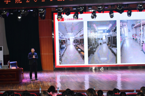 随后,王文立主任以“一抓、二建、三评”为题详细解读了公司的员工管理工作,即以日常检查、比赛和活动为抓手,促进员工成长成才;完善员工和班级量化测评建设,夯实员工管理基础;发挥评奖评优评先机制,营造争先创优氛围。报告图片内容丰富,讲解细致,赢得了同学们的共鸣。