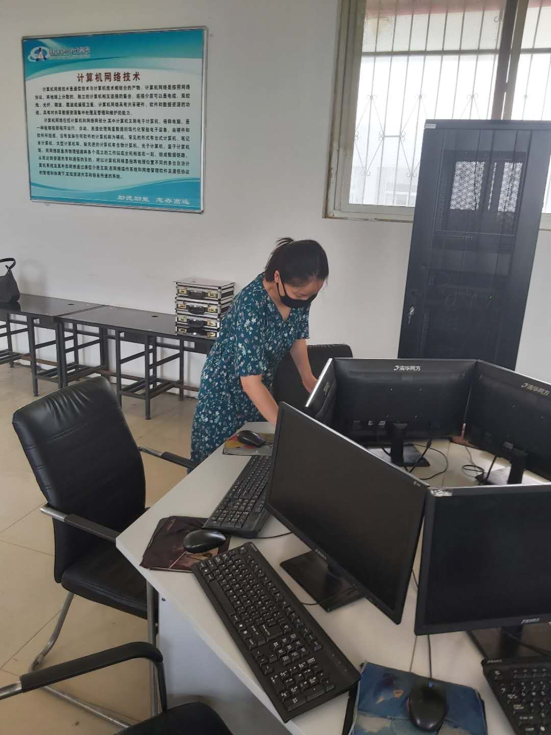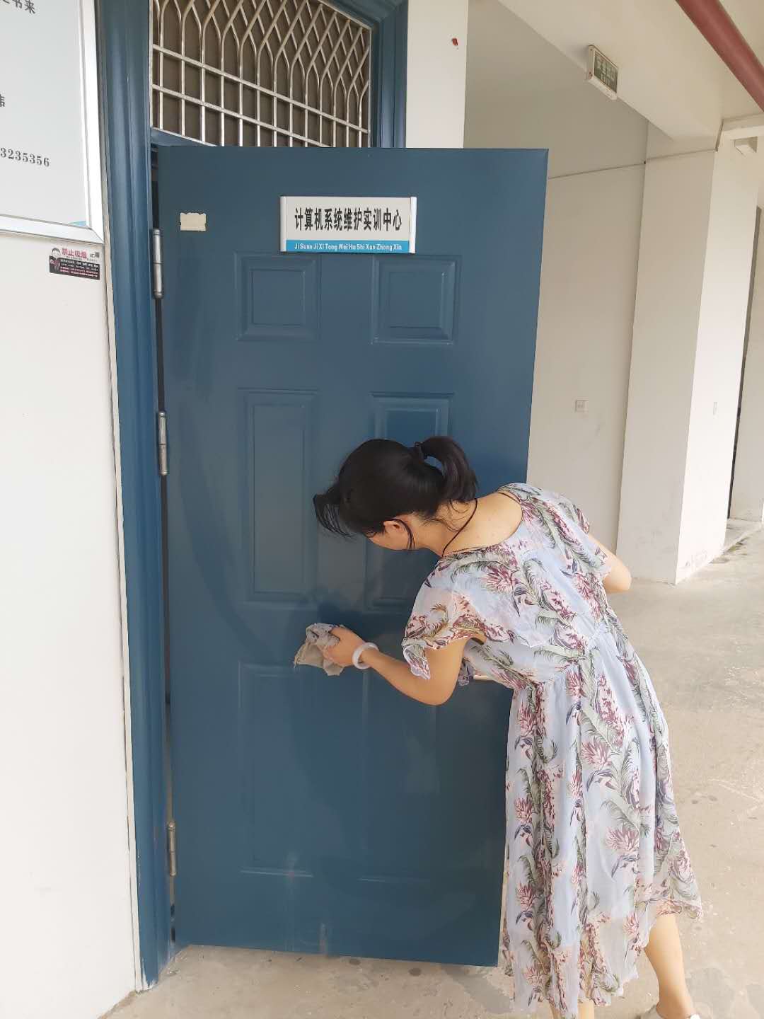 公司党总支书记李强、经理李思广亲自动手打扫,老师们深受鼓舞,大家发扬不怕脏、不怕累的精神,按照分工全方位打扫每一间教室和每一间实训室,不留任何死角,并进行全方位消毒。