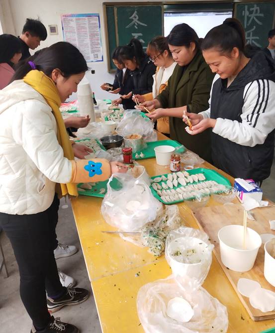 冬至包饺子是我国许多地方的传统习俗,不知不觉已接近年关,一年一度的冬至悄然来临。为了让同学们近距离感受中国传统文化的魅力,并增进同学们之间的友谊,2018年12月22日冬至当天,公司组织第十五届员工干部一起“迎冬至,包饺子”,过了一个快乐而温馨的冬至。太阳成tyc7111cc集团团总支书记王换换老师来到活动现场和大家一起包饺子,并送上节日祝福,与员工们一起共享欢乐。活动中大家都热情高涨,各显神通,整个包饺子过程欢声笑语不断,大家齐心协力、精诚合作,一排排独具个性的“饺子”很快就摆满了一个个盘子。热气腾腾的饺子散发的阵阵饺子香,温暖了离家在外的广大学子。