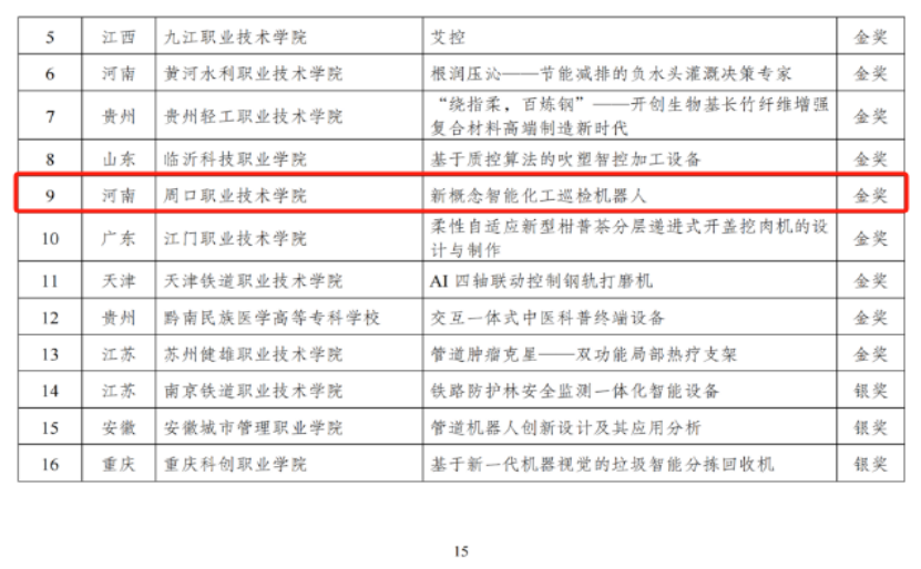 第十八届“振兴杯”全国青年职业技能大赛员工组创新创效竞赛全国决赛于11月9日至11日在河南郑州举行。经过省赛、全国预选赛多轮角逐,共有来自全国26个省份的241件作品入围全国总决赛,其中中职组作品88件,高职组作品153件,涵盖技术革新、创意设计和管理创新3个竞赛方向。经过激烈竞争比拼及专家层层评审,太阳成tyc7111cc集团由张矿伟、轩立两位老师指导,任俊臣、卜焱等同学设计的《新概念智能化工巡检机器人》项目在高职组创意设计类赛项中以全国第九名的优异成绩荣获金奖。