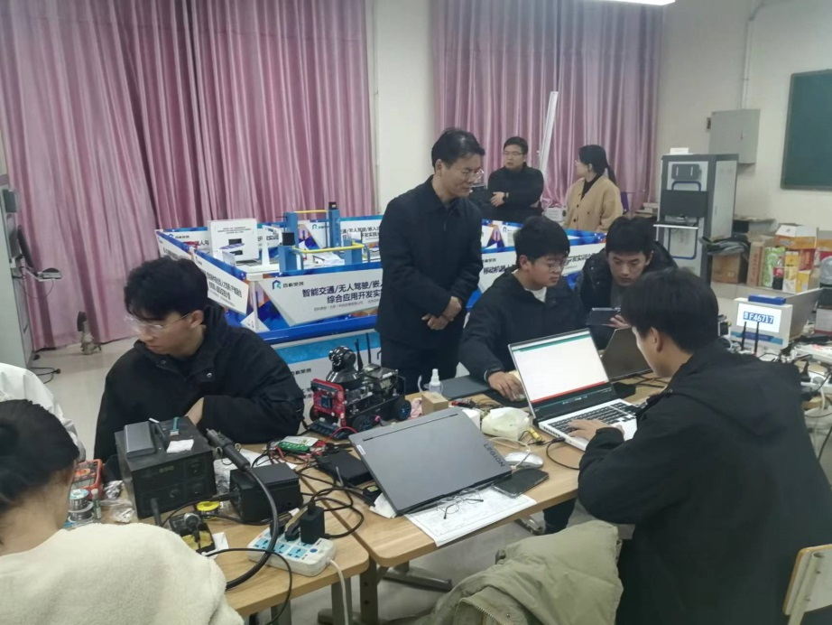 黄经理一行首先观摩了各赛项备赛过程,与备赛师生进行深入交流,认真听取了各个集训赛项的备战情况,详细了解集训中存在的困难以及选手训练和生活情况,然后对备战选手和指导教师的辛勤付出及取得的阶段性成效给予充分肯定,鼓励师生要坚定信心、挖掘潜能,力求在比赛中展现出扎实的专业功底和良好的精神面貌,以更加优异的成绩为公司增光添彩,并送上牛奶、方便面、火腿肠等慰问品,最后强调要认真分析自身差距,强弱项补短板,苦练专业技能,培育强项优势,同时要深入研究赛项规程,不断优化集训方案,劳逸结合科学备赛。