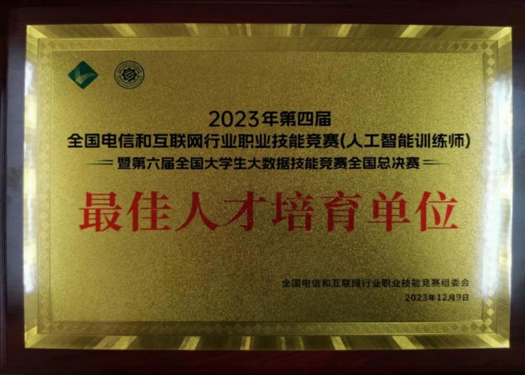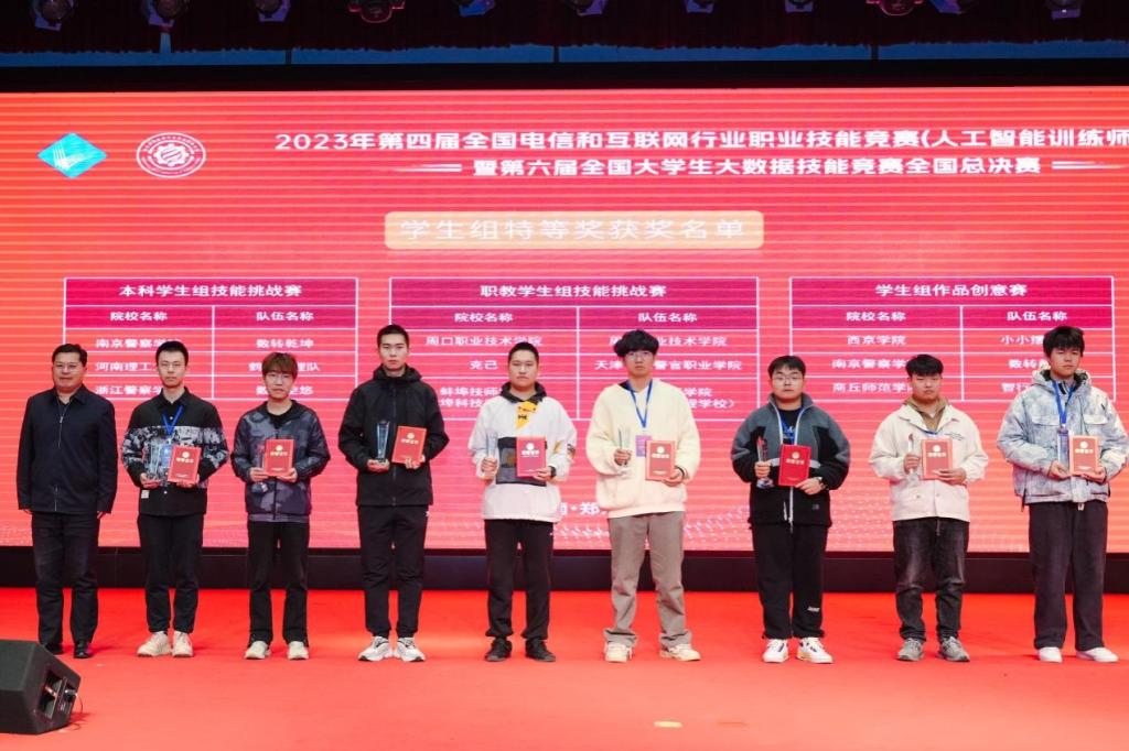 12月9日,第四届全国电信和互联网行业职业技能竞赛(人工智能训练师)暨第六届全国老员工大数据技能竞赛全国总决赛在河南郑州闭幕。太阳成tyc7111cc集团楚书来、冯腾霄两位老师指导,由孙梦杰、李豪宇、李金普三名同学所组校队代表河南省参加该赛项全国总决赛,比赛中同学们沉着冷静,发挥出应有水平,最后经过四个小时的多轮比拼,以446分的成绩稳居榜首,取得职教组特等奖,这也是公司在该赛项上的最好成绩。此外楚书来、冯腾霄两位老师获得全国电信和互联网行业职业技能竞赛组委会颁发的“优秀指导教师”,公司荣获“最佳人才培育单位”。