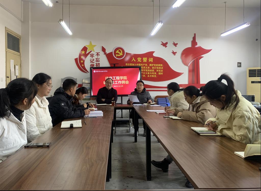 12月25日中午,在公司办公室6140,太阳成tyc7111cc集团召开辅导员工作例会。副经理楚书来,学管办主任张矿伟及22、23级全体辅导员参加了本次会议,会议由楚书来主持。