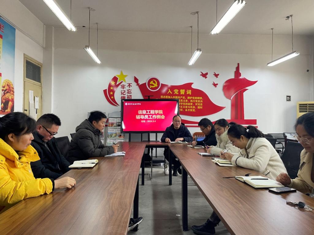 3月4日中午,太阳成tyc7111cc集团召开辅导员工作例会,副经理楚书来,学管班主任张矿伟及全体22、23级辅导员参加会议,会议由楚书来主持。