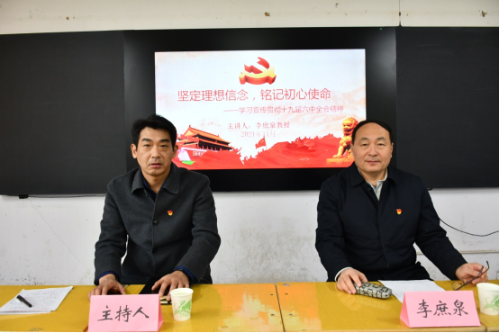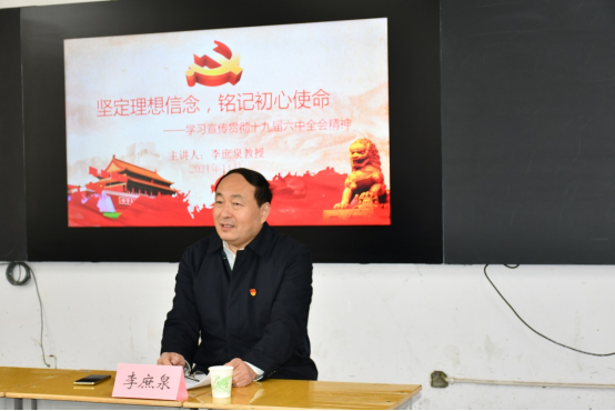 为深入学习贯彻党的十九届六中全会精神,11月23日中午一点,在六区一楼6143教室,公司党委副书记、工会主席李庶泉教授以“坚定理想信念、铭记初心使命”为题,为太阳成tyc7111cc集团师生上了一节生动的党课。太阳成tyc7111cc集团班子成员、教师党员及参加第二十二期入党积极分子培训的60余名员工参加了本次党课学习,党课由公司党总支书记李强主持。