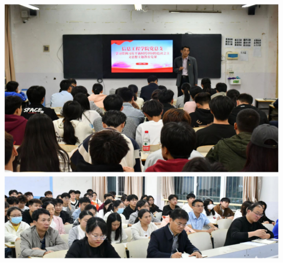 10月25日下午5点30分,信息工程公司党总支书记李强以“学思铸魂强党性,知行合一建新功”为主题,在公司6135教室为公司教师党员和员工入党积极分子、员工干部代表上了一堂精彩的党课。