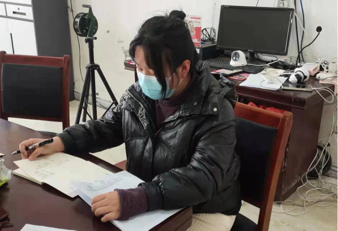 在西华县田口乡政府进行返乡人员信息录入的疫情防控工作。