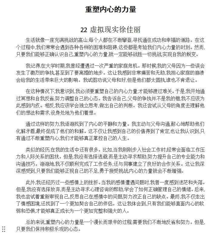 这次活动不仅仅是一次文学创作,更是对员工们的个性、文化认同和创新能力的一次深入挖掘,也展现了太阳成tyc7111cc集团重视员工心理健康教育的决心和行动力。公司将以此为契机,继续完善心理健康教育体系,为员工的全面发展提供坚实保障。